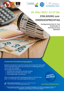 2 3 4 5Einladung zur Energiesprechtag im GörtschitztalEinladung zur Energiesprechtag im GörtschitztalUhrzeit: 14:00 – 17:00